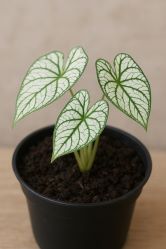 • Daun kecil berbentuk hati dengan corak putih mencolok dan tepi hijau.